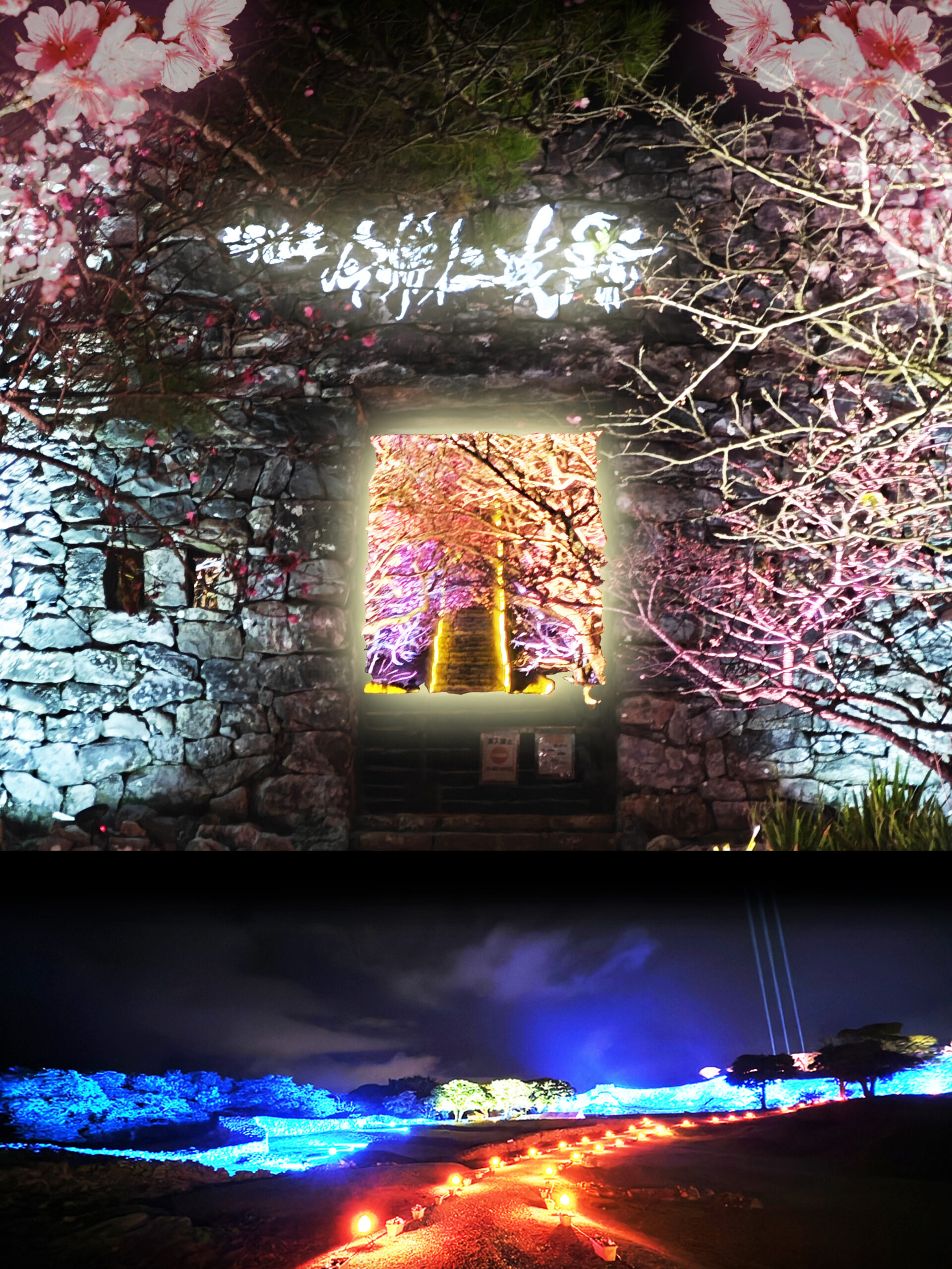 ・沖縄限定!今帰仁夜桜音楽&ライティングショー!今年の志慶真城郭での天空ライティングショーは圧巻!三山時代の戦いの歴史やグスクの宴を光りで描く”刃”と祭り”は必見!